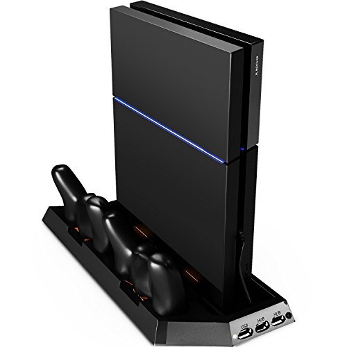 Findway Vertical Stand Cooler Fan Charging Station with Dual Charger Ports and USB HUB for PS4 PlayStation 4 Console Dualshock Controllers