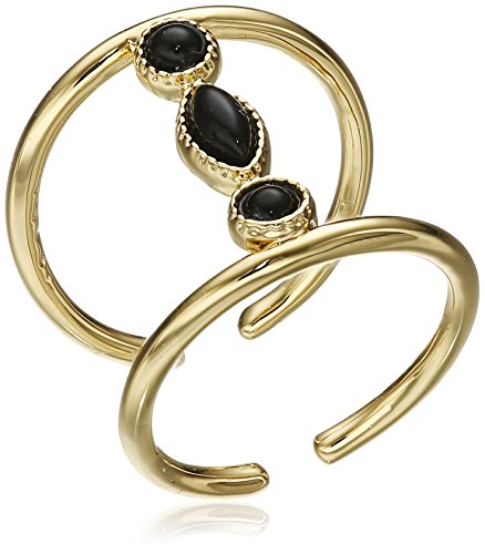 Ettika Vanishing Act Onyx and Gold Adjustable Ring, Size 5-7