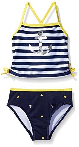 Nautica Sportswear Baby Girls' Stripe Tankini with Silver Anchor Graphic Swimsuit, Navy, 18 Months