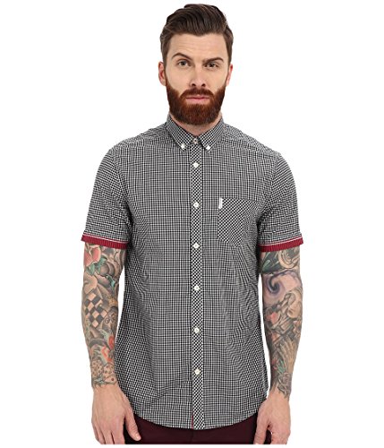Ben Sherman Men's Short Sleeve Button-Down Shirt with Contrast Cuff, Jet Black, Large