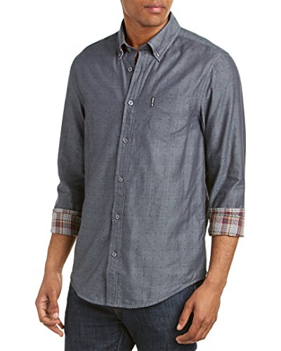 Ben Sherman Men's Long Sleeve Reversible Dobby Button Down Shirt, Concrete, Small