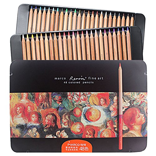 Huhuhero Marco Renior 48-Count Oil Based Colored Pencils for Artist Sketching/Art Writing/Artwork/Adults Coloring Book, Metal Tin Case, 48 Assorted Colors