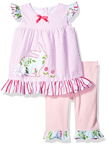 Bonnie Baby Baby Girls' Bunny Appliqued Seersucker Playwear Set, White, 24 Months