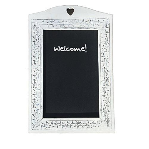 The Stockbridge Chalkboard with Rustic Floral Border and Heart Topped Frame, Distressed White 29 1/2" H (75cm,) By Whole House Worlds