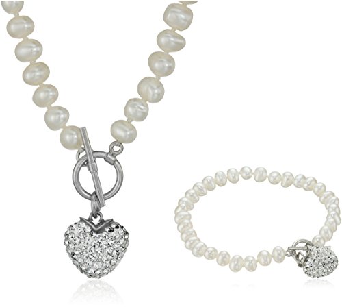 Sterling Silver Toggle Necklace and Bracelet Cultured Pearl Jewelry Set