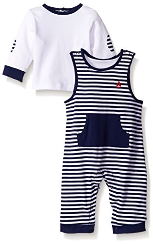 Little Me Baby Boys' Sailboat Overall Set, Navy Stripe, 3 Months