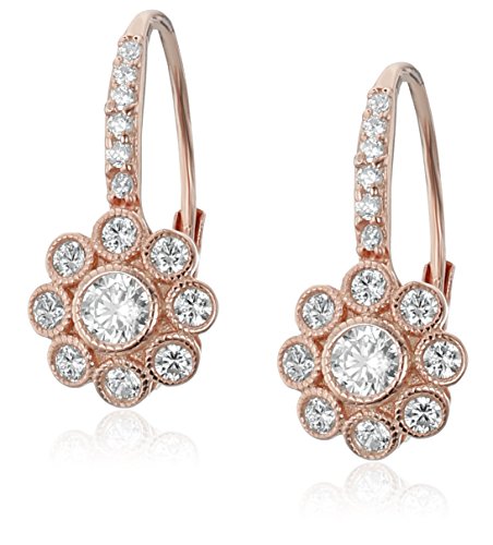 Sterling Silver Plated Flower Cubic Zirconia Leverback Dangle Earrings