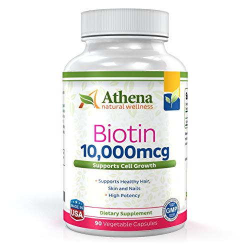 Athena - Biotin Vitamin 10,000mcg - Supports Healthy Hair, Skin and Nails - Suitable for Vegetarians - 90 Vegetable Softgels Capsules Supplement