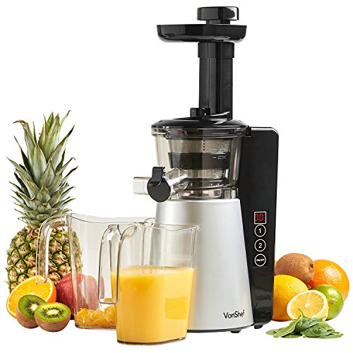 VonShef Digital Slow Masticating Juicer Machine with 2 Speeds, Reverse Function, Quiet Motor & Cleaning Brush