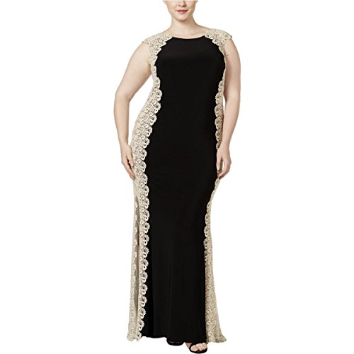 Xscape Women's Plus-Size Long Dress with Lace Sides, Black/Gold, 18W