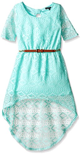 My Michelle Girls' Solid Crochet High/Low Bow-Back Dress with Keyhole and Belt