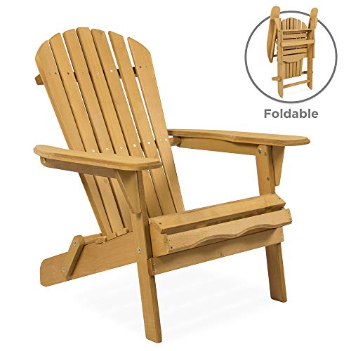 Best Choice Products Folding Wood Adirondack Lounger Chair Accent Furniture for Yard, Patio, Garden w/ Natural Finish, Brown