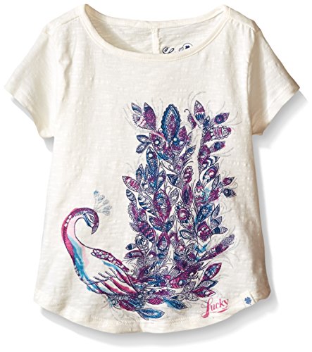 Lucky Brand Little Girls Peacock Feather Tee, Gardenia, 4