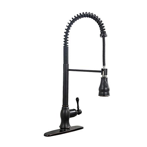 VAPSINT Modern Commercial One Handle Single Lever Spring Sprayer Pull Down Stainless Steel Pre Rinse Pull Out Oil Rubbed Bronze Kitchen Faucet, Bronze Kitchen Sink Faucet