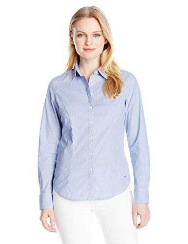 Dockers Women's Ideal Long Sleeve Stretch Shirt, Eoe Delft, Petite/Small