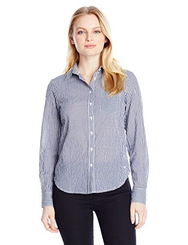 Dockers Women's Essential Perfect Pattern Relaxed Fit Long Sleeve Boyfriend Shirt, Margot Medieval Blue, Petite/Large