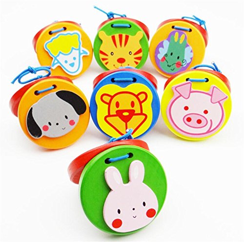 AxiEr Lovley Animal Pattern Wooden Finger Castanet for Baby Early Education 7pcs/set