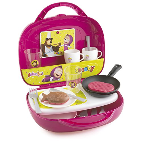 Smoby Masha and Michka 310601 Mini Kitchen Set with Recipe Cards and 17 Accessories