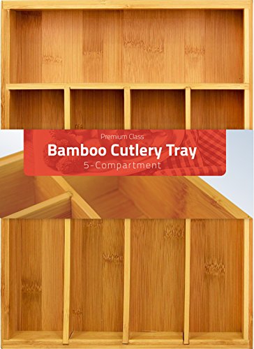 Bamboo Cutlery tray-Silverware Organizer-5 compartment-by Utopia Kitchen