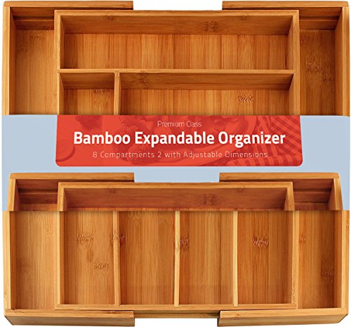 Utopia Kitchen Bamboo Expandable Cutlery Tray - Silverware & Utensils Organizer - 8 Compartment