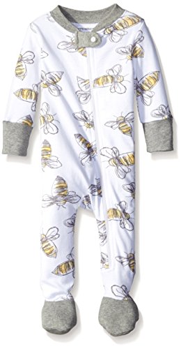 Burt's Bees Baby Baby Boy's Pajamas, Zip Front Non-Slip Footed Sleeper PJs, 100% Organic Cotton, Heather Grey Watercolor Bee 12 Months