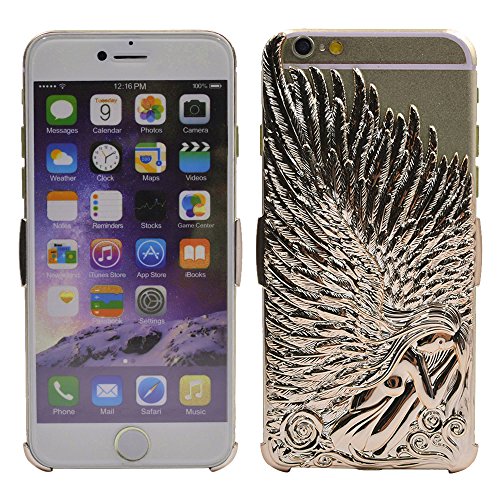 iPhone 6S Plus Case, Turf Angel Wings Stylish Deluxe Bling Sparkly Electroplate Embossment 3D Protective Cover for Apple iPhone 6/6S Plus Gold