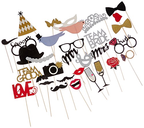 31-pieces Photo Booth Props For Wedding Party, Bridal Shower Photo Booth Props for Wedding Shower Party Supplies (Glued/No DIY Required)