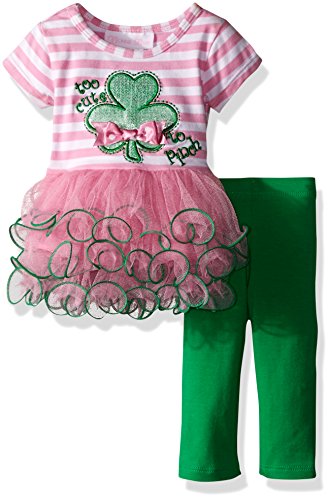 Bonnie Baby Girls' Appliqued Tutu Skirt Dress and Legging Set,Pink,0-3 Months