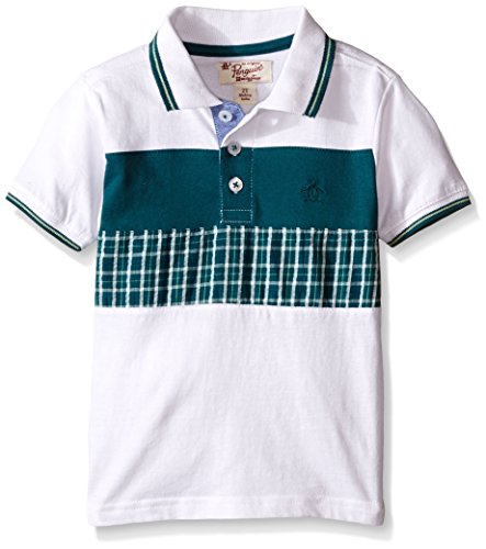 Penguin Little Boys' Toddler Blocked Polo, White, 2T