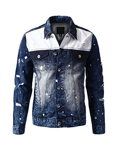 URBANCREWS Mens Hipster Hip Hop Button Down Long Sleeve Hooded Denim Jacket