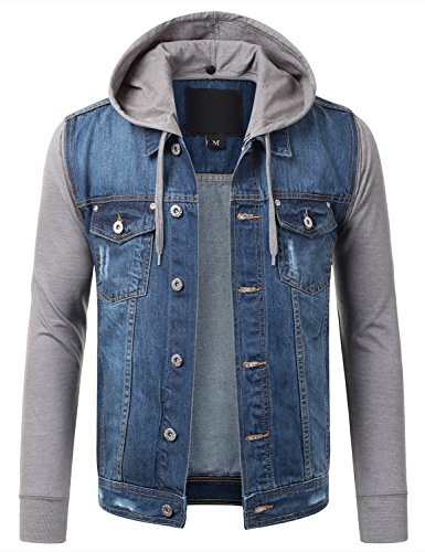 URBANCREWS Mens Hipster Hip Hop Button Down Hooded Denim Jacket Msb XXLarge