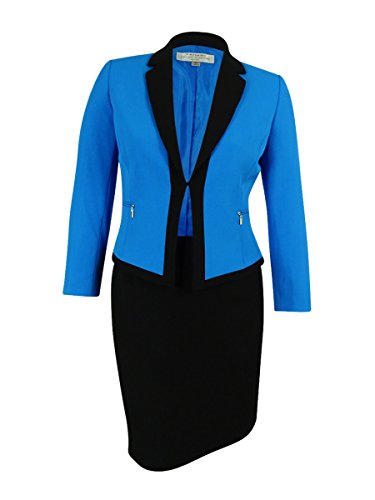 Tahari by Arthur S. Levine Women's Petite Size Crepe Color Block Skirt Suit, Ocean Blue/Black, 12