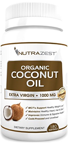Nutrazest Extra Virgin Organic Coconut Oil Capsules - 1000mg with MCTs to Promote Healthy Weight Loss, Boost Digestion, Natural Immunity & Hair, Skin, Nails Health – 100% Cold Pressed 180 Softgels