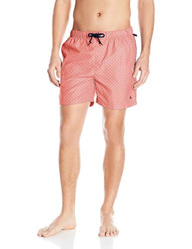 Original Penguin Men's Geo Print Elastic Waist Volley Swim Trunk, Spiced Coral, Medium