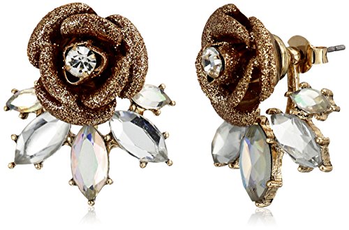 Betsey Johnson "Luminous Betsey" Glitter Rose and Faceted Stone Earrings Jackets