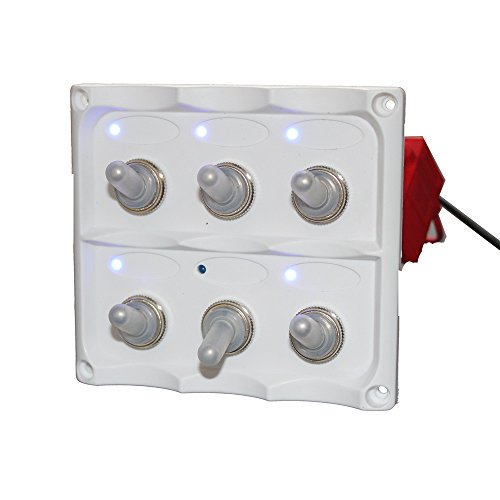 X-Haibei Splashproof Blue LED ON-Off Toggle Switch Panel Marine Boat 6 Gang & 15A Fuses