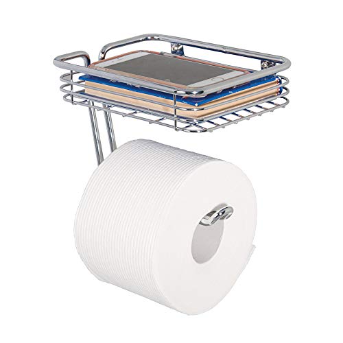 iDesign Classico Metal Wall Mount Toilet Paper Holder with Wire Shelf for Master, Guest, Kid's Bathroom, 7.25" x 5.25" x 5.3", Chrome