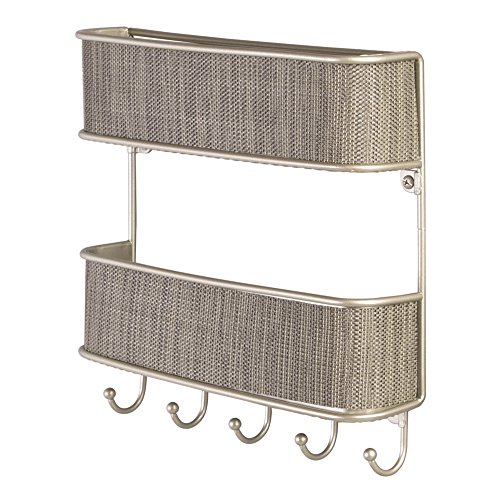 InterDesign Twillo Mail, Letter Holder, Key Rack Organizer for Entryway, Kitchen - Wall Mount, Pearl Champagne