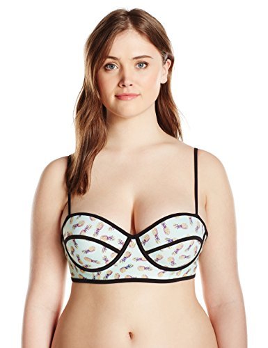 Bra Society Women's Plus-Size Tropic Balconette Bikini Top, Pineapple, 3X