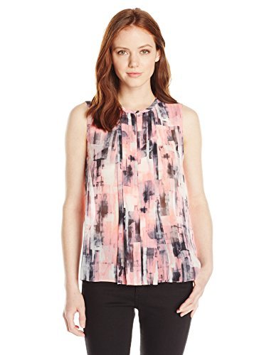 ELLEN TRACY Women's Petite Size Pleat-Front Keyhole Top, Ethereal Multi, Medium
