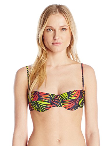 MILLY Women's Palm Print Italian Swim Maxime Underwire Bikini Top, Navy Multi, Petite