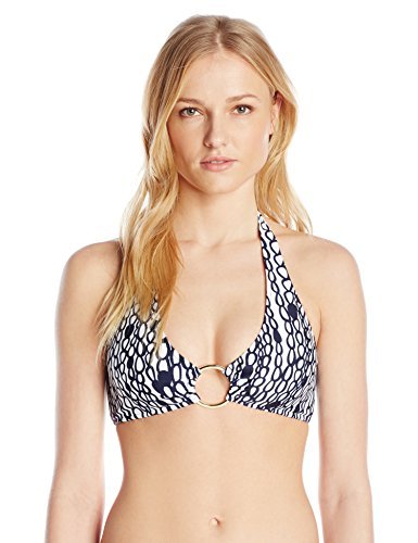 MILLY Women's Chain Print Italian Santorini Halter Bikini Top, White/Navy, Petite