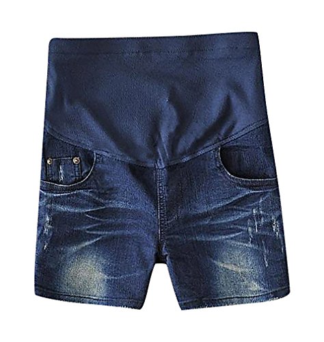 MTRNTY Women's Maternity Elastic Waist Denim Shorts Dark Blue Jeans with Pockets, Large