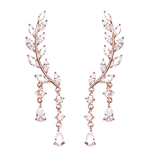 EVERU CZ Vine Jewelry Sweep Wrap Crystal Rose Gold Plated Leaf Ear Cuffs Set Stud Earrings for Women