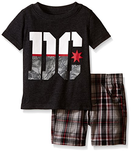 DC Apparel Baby Jersey Crew Neck Tee and Plaid Shorts, Black, 18 Months