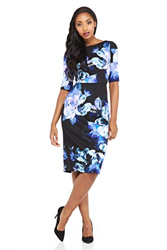 London Times Women's Elbow Sleeve Round Neck Scuba Crepe Sheath Dress