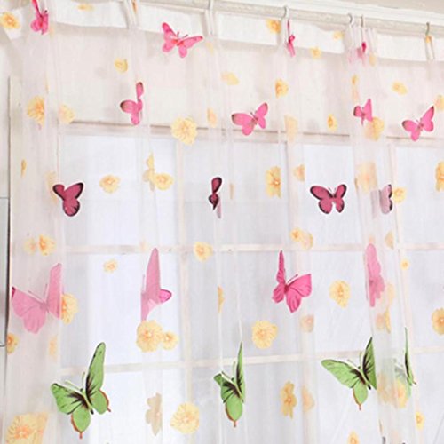 Malloom New Butterfly Print Sheer Window Panel Curtains Room Divider