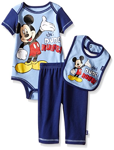 Disney Baby Mickey Mouse 3 Piece Bodysuit, Pant and Bib Set, Red, 6-9 Months