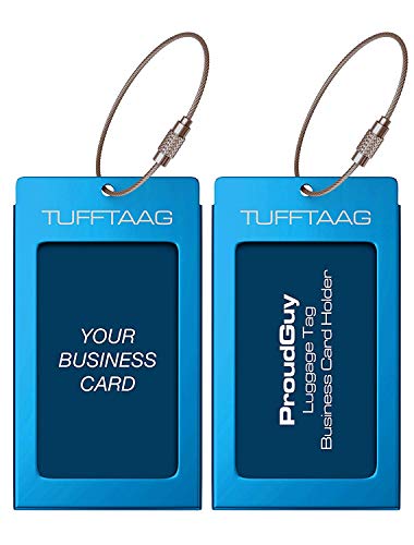 Luggage Tags Business Card Holder TUFFTAAG PAIR Travel ID Bag Tag - Blue Azure