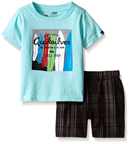 Quiksilver Baby Jersey Tee and Plaid Shorts Set, Aqua, 18 Months